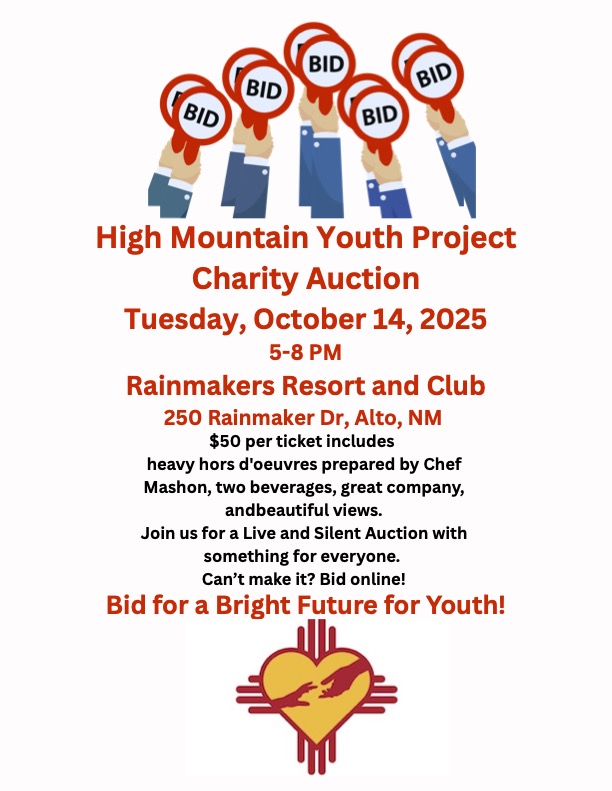 A live and silent auction with food and fun to benefit High Mountain Youth Project. Join us in our mission to provide a comprehensive safety net for youth experiencing homelessness! You can make a difference!