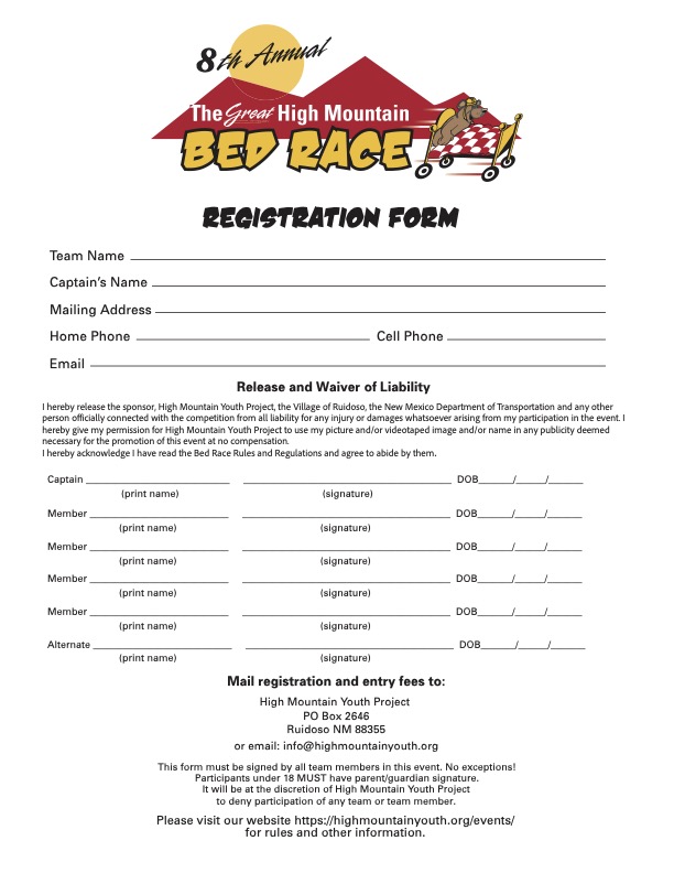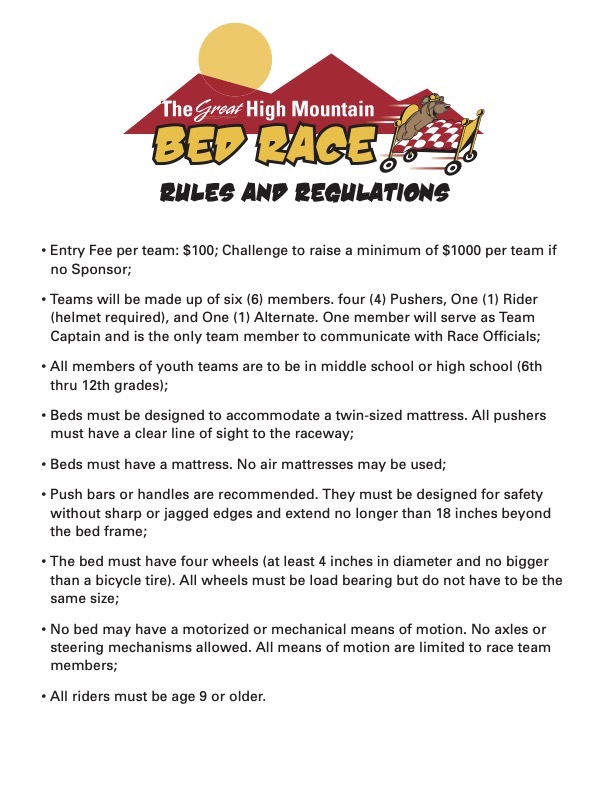 Join High Mountain Youth Project for the Great High Mountain Bed Race and raise funds for the Drop-in Center, the 24-hour Youth Emergency Shelter, and Transitional Housing/Rapid Rehousing Programs.